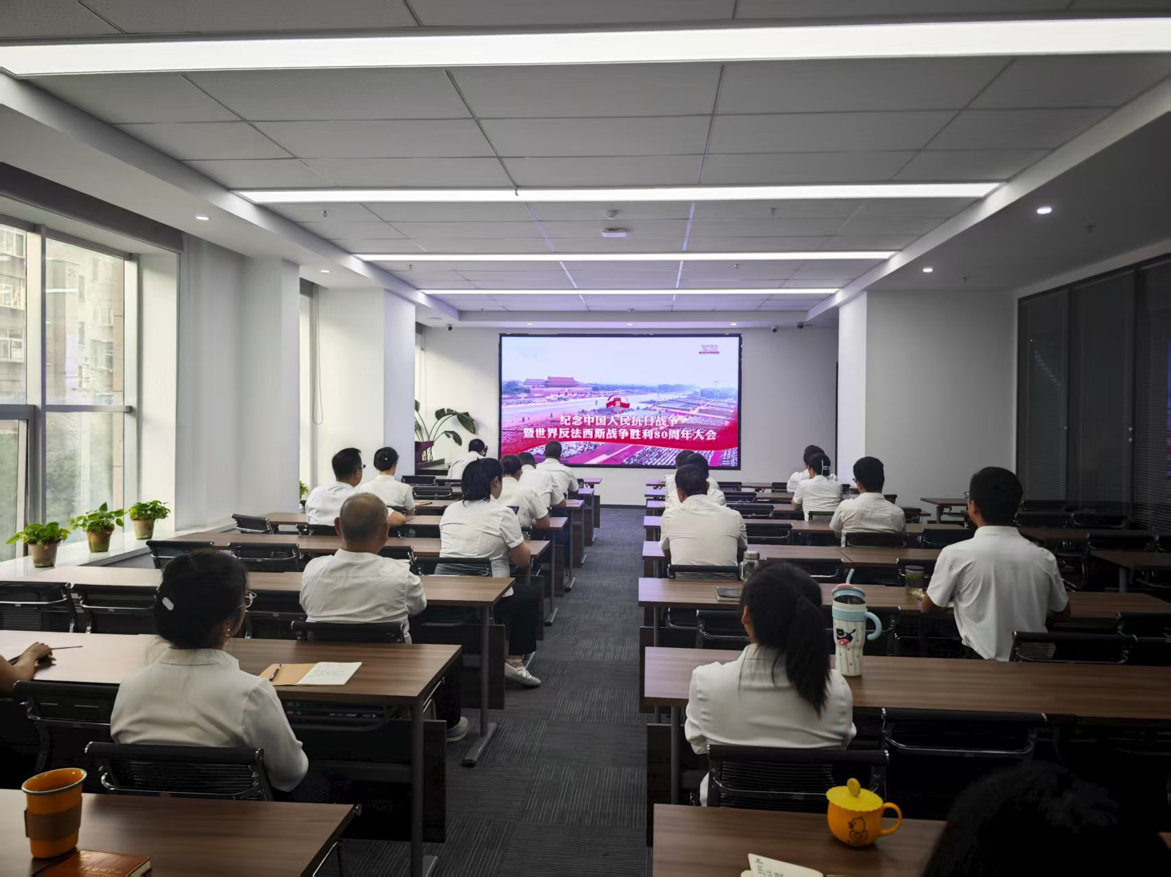 9月3日上午9時,甘肅建投培訓(xùn)中心有限公司組織全體職工觀看了紀(jì)念中國人民抗日戰(zhàn)爭暨世界反法西斯戰(zhàn)爭勝利80周年大會,共同見證了這一具有重大歷史意義的時刻。 上午9時,大會在北京天安門廣場隆重舉行,中共中央總書記、國家主席、中央軍委主席習(xí)近平發(fā)表重要講話并檢閱部隊(duì)。職工們聚精會神...
